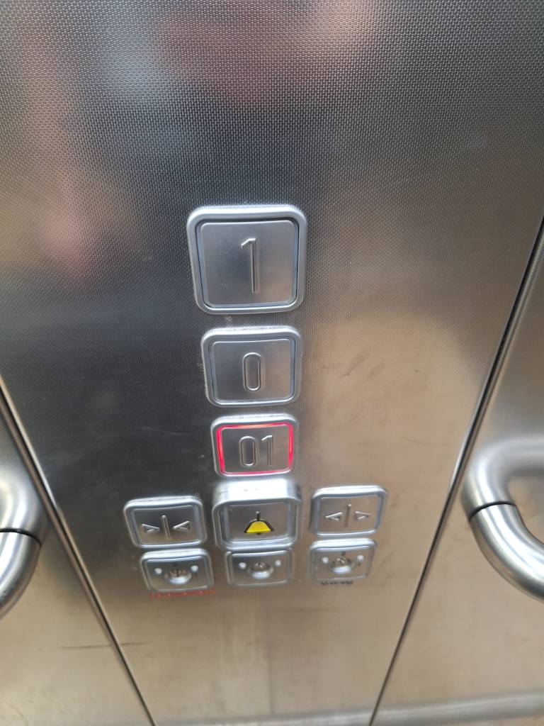 1-0-01, Informatiker müssen viel erdulden in Fahrstühlen.