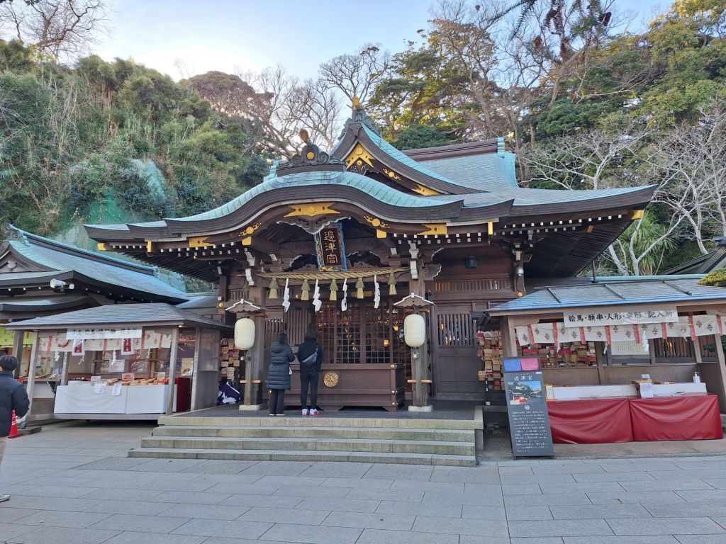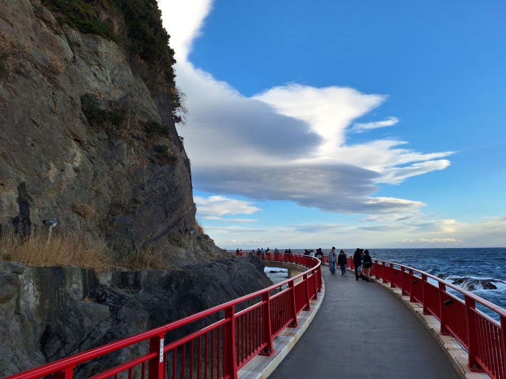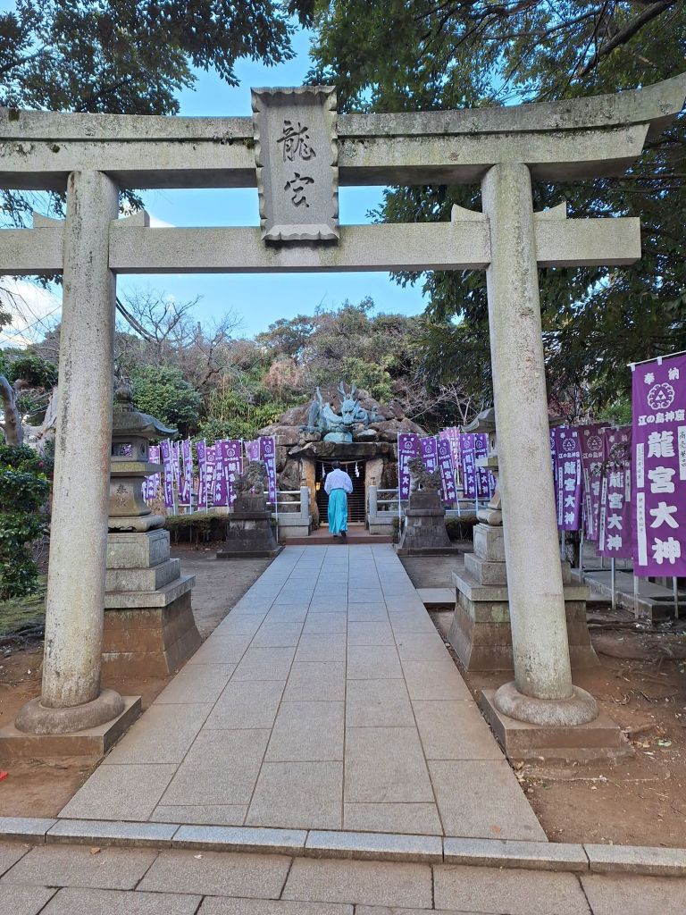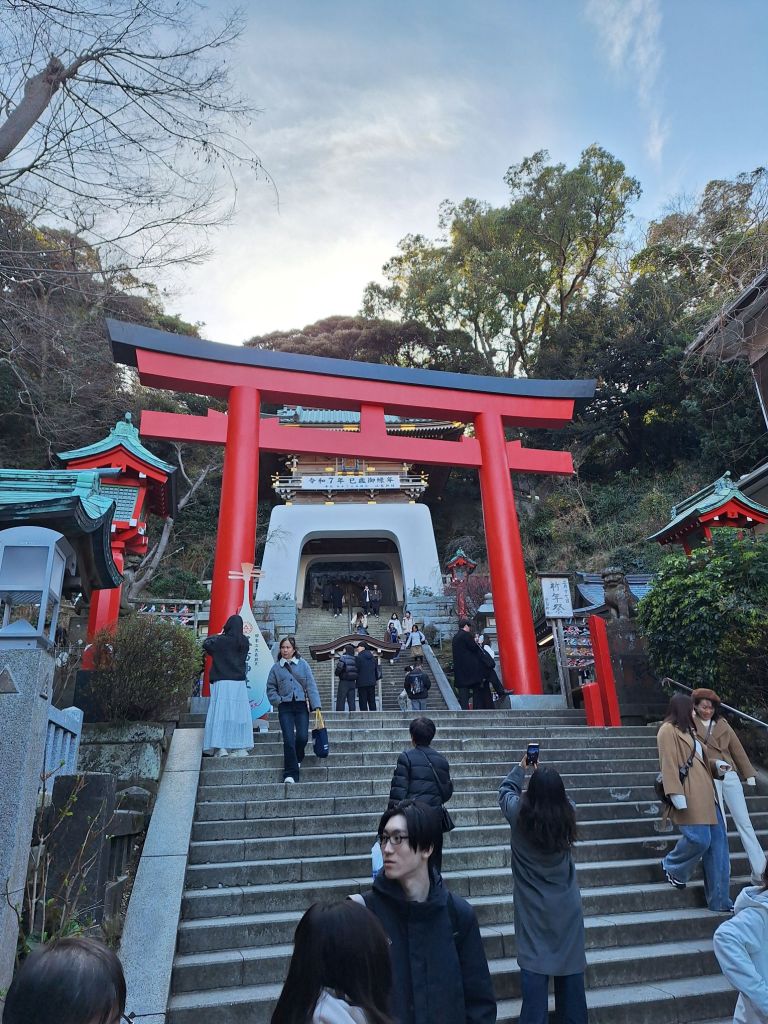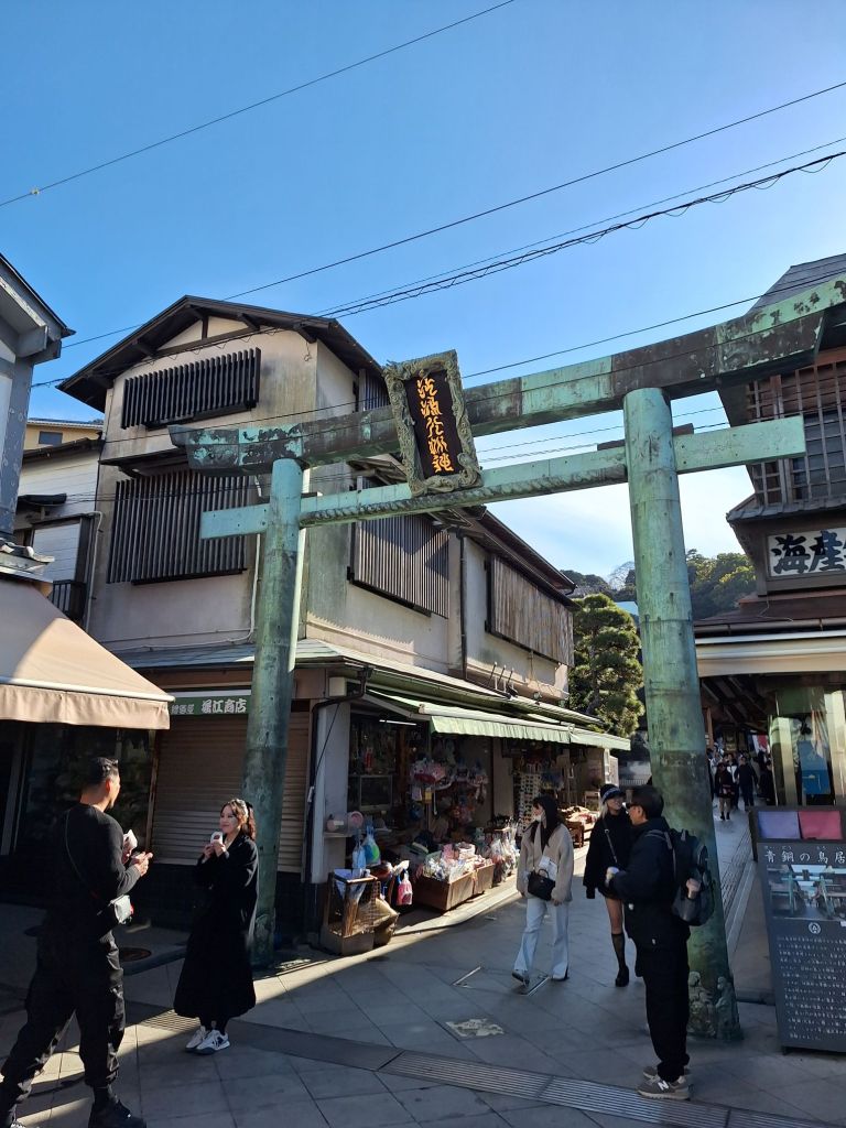 Von dort spazieren wir über die Brücke, die Enoshima mit Honshu verbindet. Die Insel ist beliebt bei Touristen, und viele bevölkern auch heute die Stände, Schreine und Restaurants.