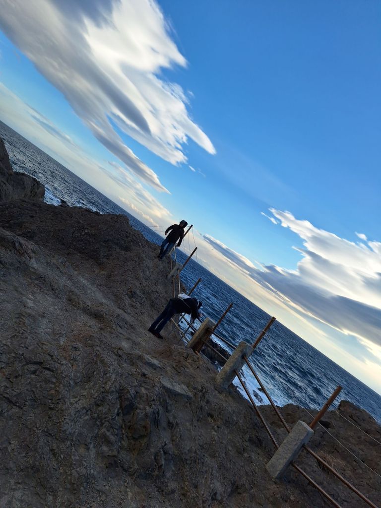 Das Meer ist atemberaubend auf Enoshima. Auf dem Rückweg bläst uns Sand ins Gesicht.