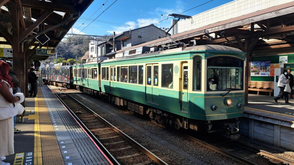 Enoshima ist eine kleine Halbinsel in der Nähe von Kamakura. Wir nehmen die Enoden, eine kleine, nostalgisch anmutende Bahn zur Station Enoshima: