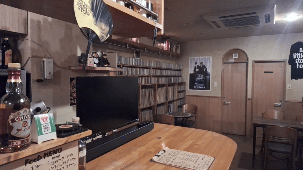 重さん’s Laden liegt mitten im Wohngebiet. Gedämpftes Licht fällt auf eine Holzbar mit Counter, es läuft Jazz und Blues. Wenn ich da bin ist meist nicht so viel los (nun ja, ich war erst zweimal da) – aber es gibt eine heimelige Stimmung hier, eine riesige Plattensammlung und den unglaublich netten 重さん natürlich. Er kommt aus 千葉、und hat auch einige Jahre auf 沖縄 gelebt. Hier habe ich ein nettes schwedisches Pärchen kennengelernt, das hier nun einige Jahre lebt. Mit R., dem männlichen Teil des Paares, und seinem Herrn Vater M. war ich auch noch Fußballschauen in Shibuya. Ich studierte vor allem das Verhalten der japanischen Fans im Geheimen, und amüsierte mich über einige „typische“ UK-Touristen, die natürlich auch auf Weltreise kein Spiel ihrer Heimliga verpassen dürfen.