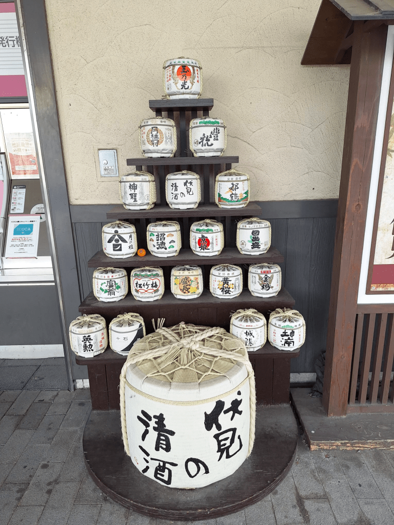 Der Morgen führt nach Kyoto. Aber nicht zu den ehrwürdigen Tempeln und Pagoden, die bereits von Touristenmassen überschwappen. Wir besuchen Fushimi, in dem Kyotos bester Sake gebraut wird. Schon am Bahnhof erwarten uns die Sakefässer.