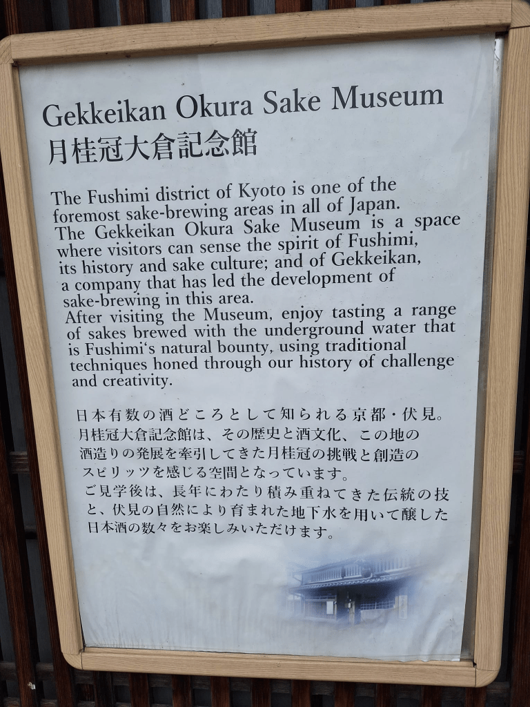 Vor der Tour ist noch Zeit, die Sakebrauerei 月桂冠 anzuschauen. Nさん kennt sie schon, geht aber liebenswerter Weise nochmal mit. Ich staune über die Herstellung mittels eines Pilzes (Koji), der auch für andere japanische Lebensmittel verwendet wird, und später in Kooperation mit Hefe aus Reis erst Zucker und dann Alkohol entstehen lässt.