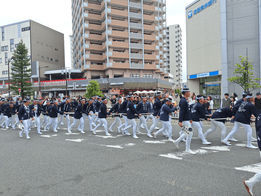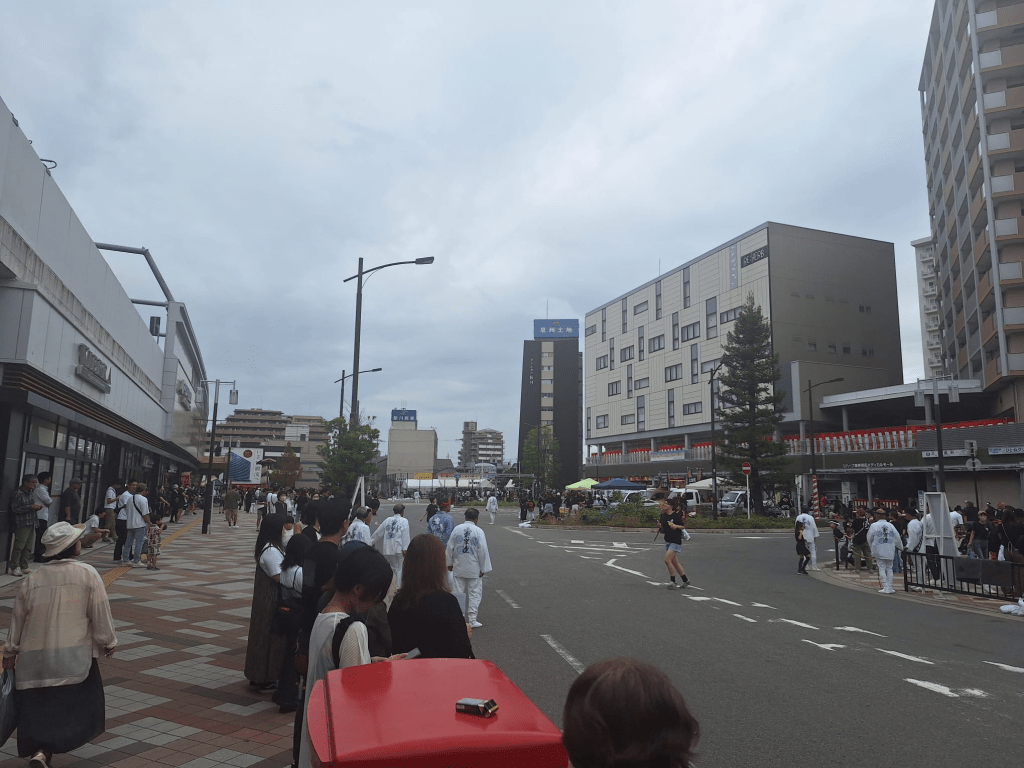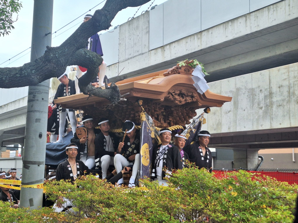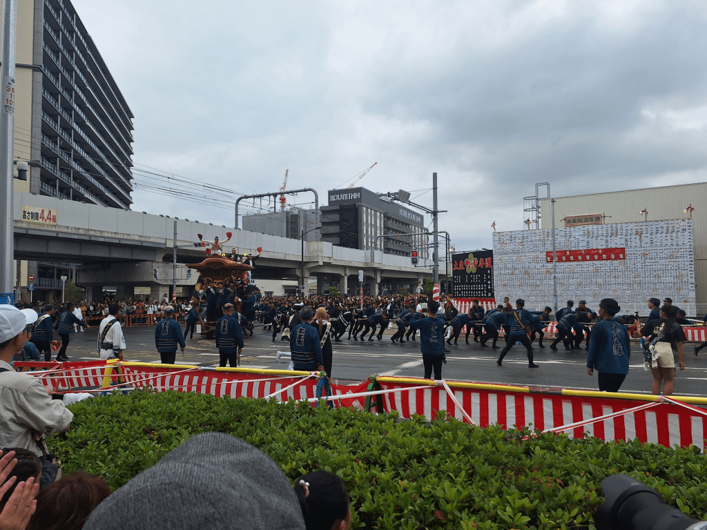 Auch wenn noch so viele Wagen vorbeifahren, es wird nicht langweilig. Elektrisierend ist die Stimmung, trozt gelegentlichem Regen. Vor uns hat eine Familie eine kleine Zeltstadt aufgebaut und sitzt in Klappstühlen am Wegesrand, ältere Damen plaudern mit Nさん und Tさん über die Stadteile. Ich staune und filme. Das ist Oosaka. Hier spürt man, dass dieses Fest wichtig ist, Teil der Kansai-Seele der Menschen. Das sieht man auch hier, am Ende des Schauspiels, in den Gesichtern der Danjiri-Besatzung.