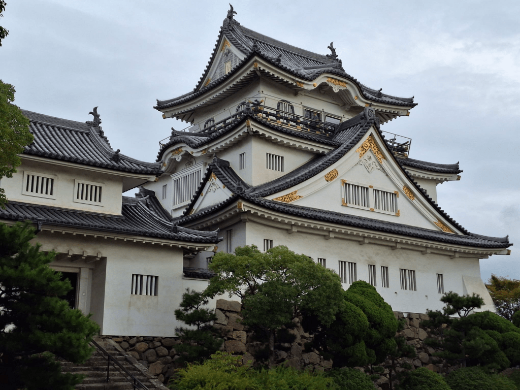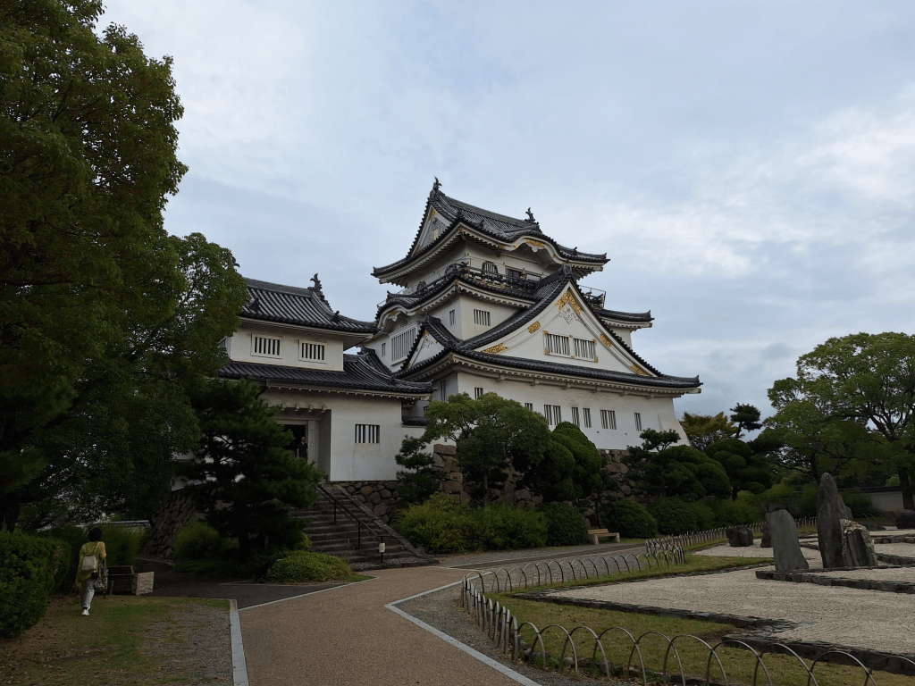 Wir entfliehen dem Trubel, und nehmen ein Taxi zur Kishiwadaburg, der kleinen Schwester der Osakaburg. Das Taxi kann endlich ich durch einen Trick selbst bezahlen, ich bin sehr stolz, obwohl es nur 1000 Yen sind. Wir verschnaufen im Besucherzentrum der Burg. Auch wenn ich Nさん erst vorgestern und Tさん erst heute kennengelernt habe, plaudern wir ungezwungen. Durch das Matsuri (und vielleicht auch die zwei Bier auf nüchternen Magen) bin ich in Hochstimmung. Wir machen uns auf dem Weg zum Schloß. Wie es oft so ist: Wenn Gäste da sind, besucht man Orte in seiner Heimat, die man sonst nicht aufsucht, so ist es auch mit Nさん und Tさん und dieser Burg. Sie lohnt sich.