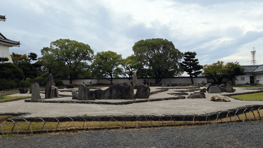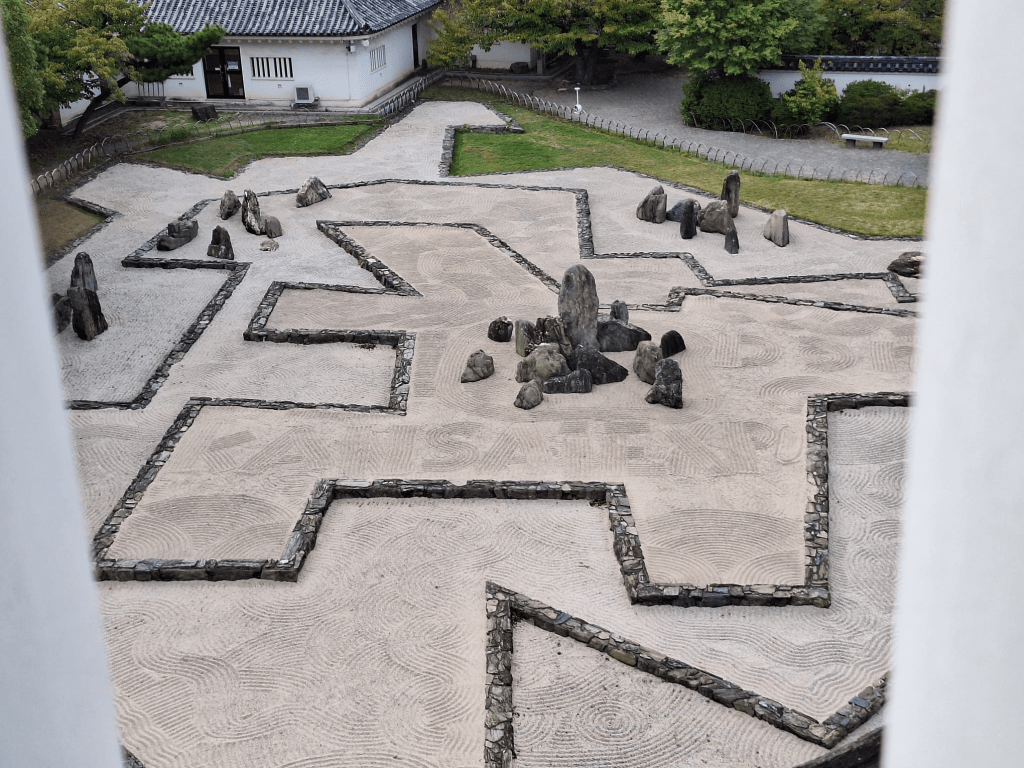 Ein herrlicher Steingarten ist vor der Burg angelegt. Wer genau hinsieht, kann eine geheime Botschaft entdecken: