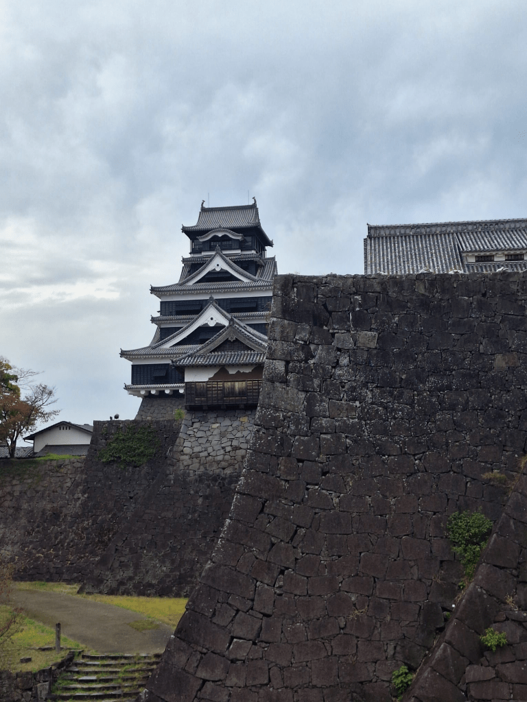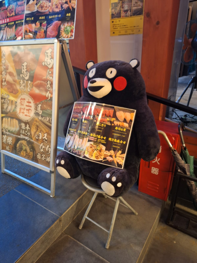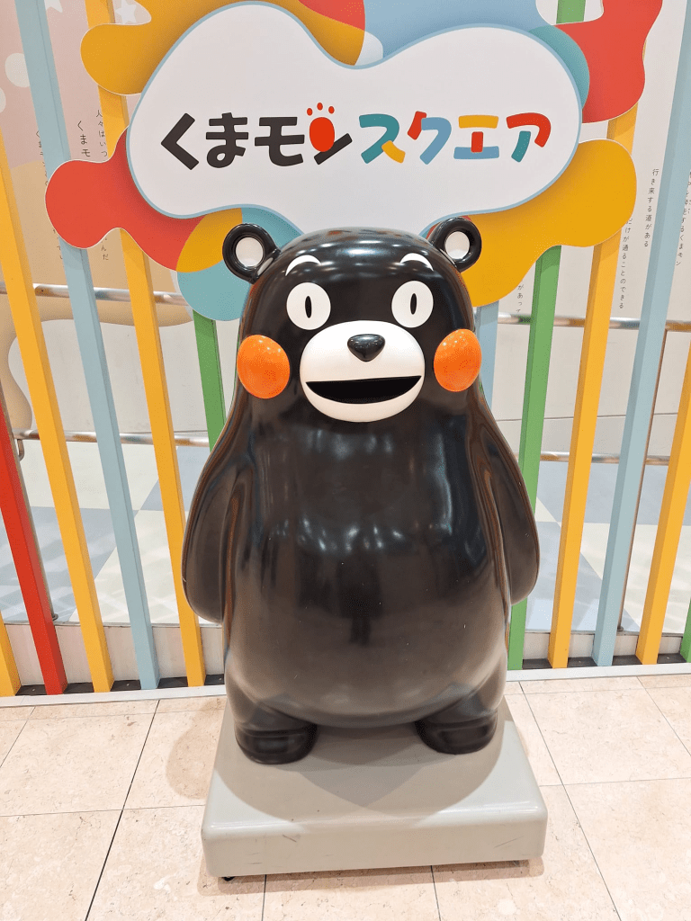 Kumamoto ist die zweite Station der Reise. Viel kleiner als Fukuoka, liebenswert. Die Stadt ist eine einzige Einkaufsmeile, will uns scheinen. Hauptattraktion ist dieses Kerlchen, genannt Kumamon, Maskottchen, überall zu sehen, und ein milliardenschwerer Wirtschaftsfaktor der Stadt: