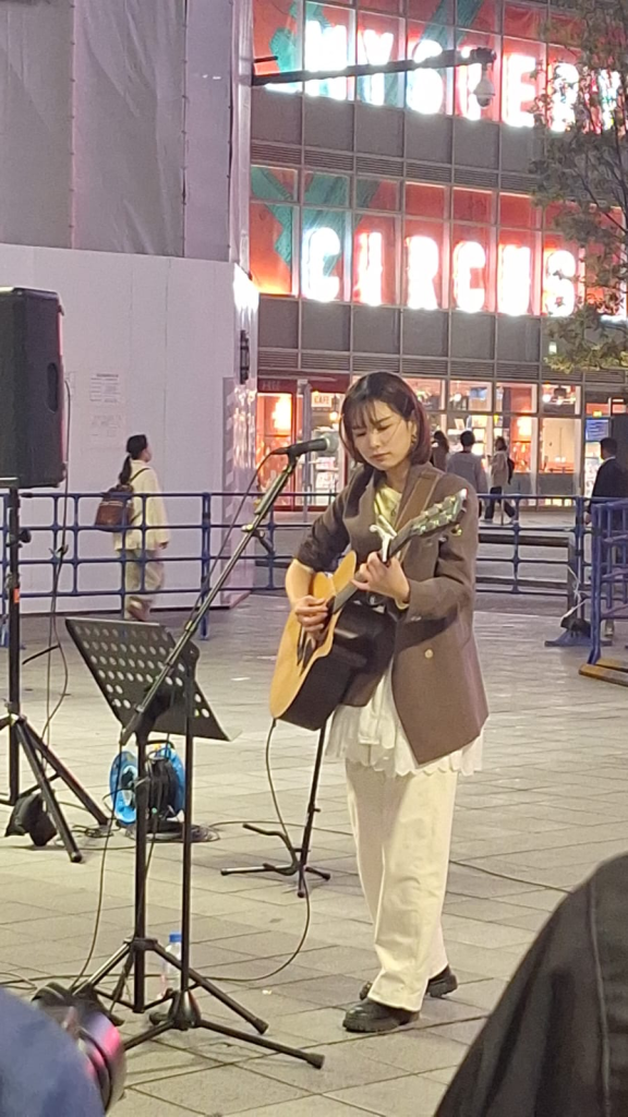 machen einen Ausflug in Shinjuku, wo ich, weil ich warten musste, dieser netten jungen Dame live zuhören konnte (ich habe sie dann bei Spotify abonniert)